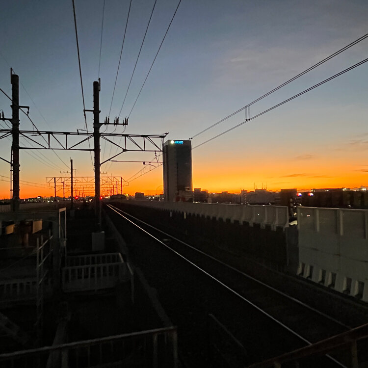 朝焼けキレイ! スカイツリー撮影は難しい😓 #東京 #朝焼け #新木場ホーム 2024/12/7 AM06:06