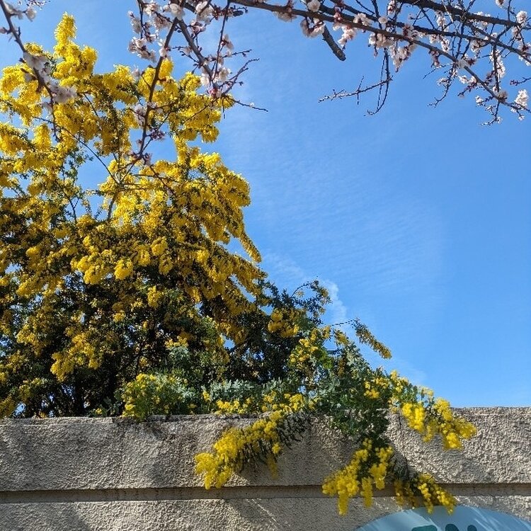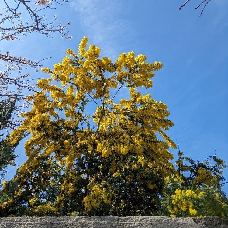 ミモザ よく通る散歩コースでしたが 初めてミモザに気がつきました😀 久しぶりの富士山🗻にも会えました😄