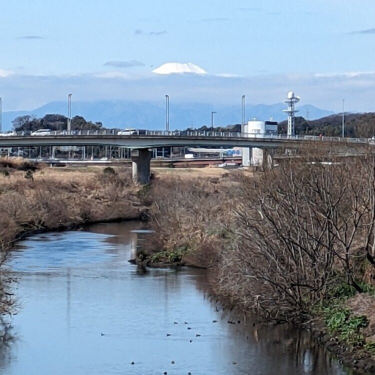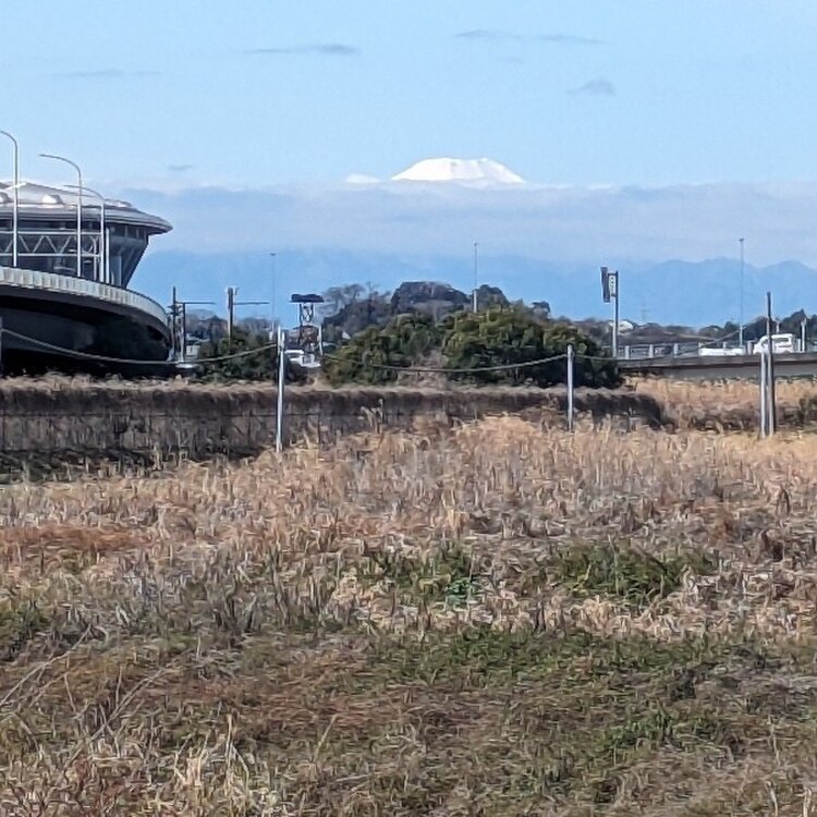 富士山🗻 会えました🤗 鶴見川土手 日産スタジアムの向う側に