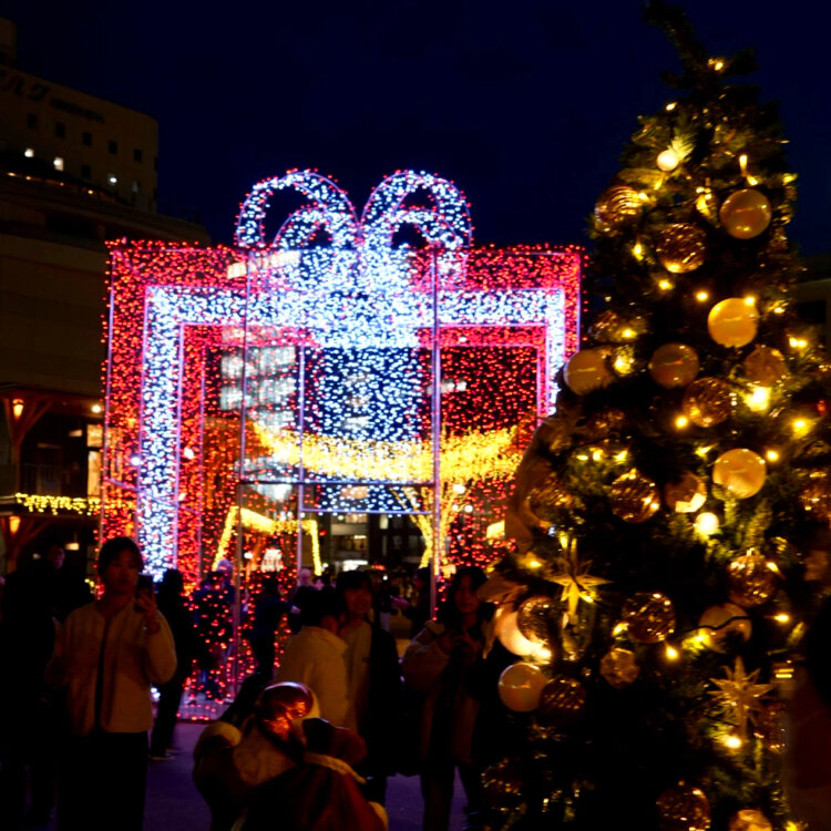 大きなプレゼントの形のイルミネーション、以前に海外で見たことがありましたが日本にもあるんだ!とびっくり。