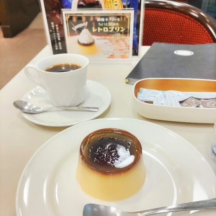 ころすけ🌱のぷりんシリーズ🍮🎵その128 大好きなぷりん特集になります✨ 日暮里〜千駄木さんぽ途中に休憩♡ レトロプリンと本日のコーヒー🍮😋☕✨ 可愛いプリンの看板につられてふらりと入室〜🤭 赤いレトロな椅子が喫茶室という感じで落ち着いてて気軽な感じがいいです♡ 弾力のあるプリンは冷凍かしら🤭(失礼しました🙏✨)ホイップありなし選べます♡ #レトロプリン #昭和プリン #弾力ある #プリン #ぷりん #ルノアール #ぷりんシリーズ