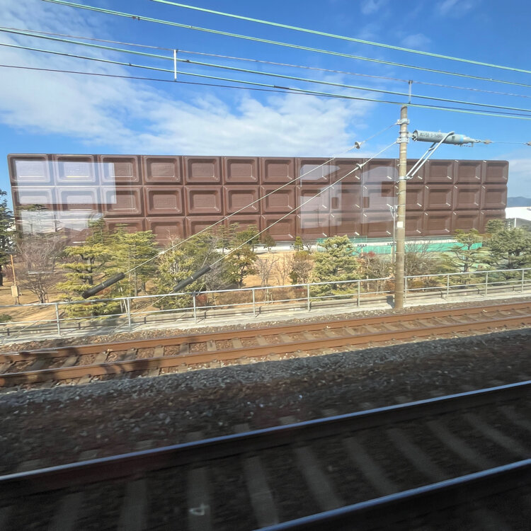 JR京都線に乗っていると見えてくるチョコレートの壁😊