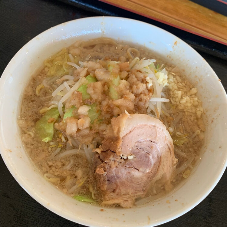 夢見てなんぼ 筑紫野店 ラーメン食べたいね〜で 今日は私でもこってり系いけそうな気分やったけん珍しく二郎系🍜🧄🐷 ラーメン小 1枚 にんにく 少なめ 野菜 普通 あぶら 普通 辛さ 普通 👛現金のみ
