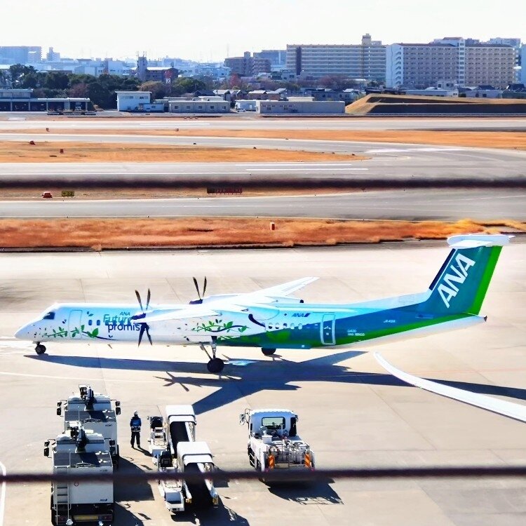可愛い飛行機降りてきたなぁーと思ったらANAのプロペラ機グリーンジェット!見れたら幸せが訪れるそうです✨見れたの嬉しかった☘️