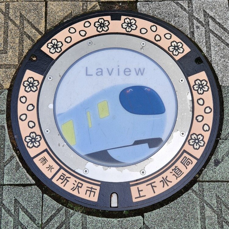 所沢駅 東口のロータリーにカラーマンホールがありました。