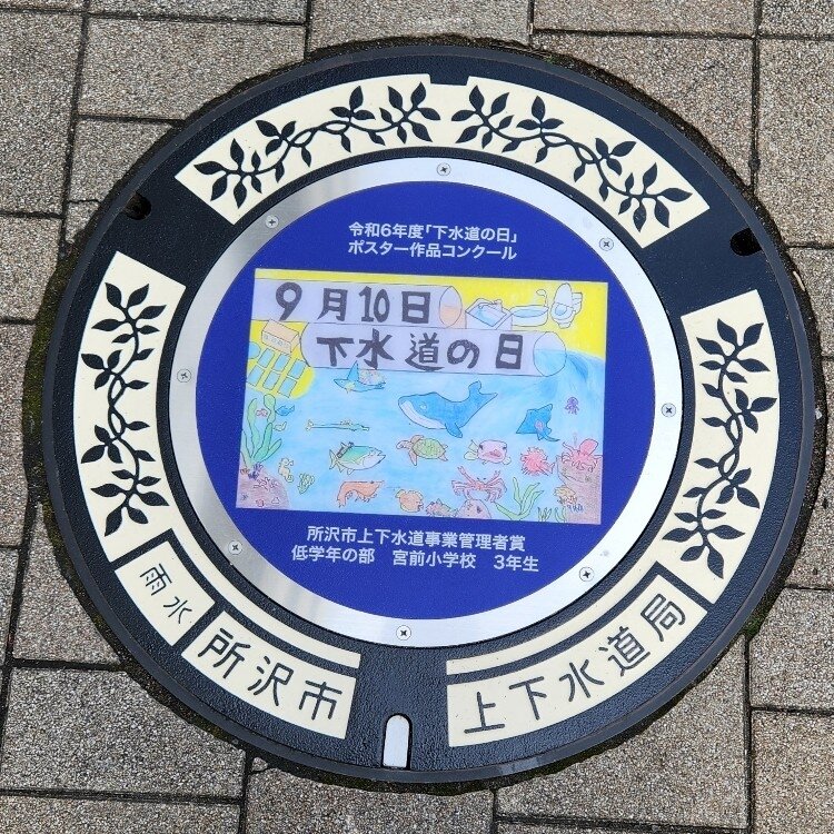 ④⑤下水道の日のポスターコンクールに入選した作品が蓋のデザインに1年間使われるそうです