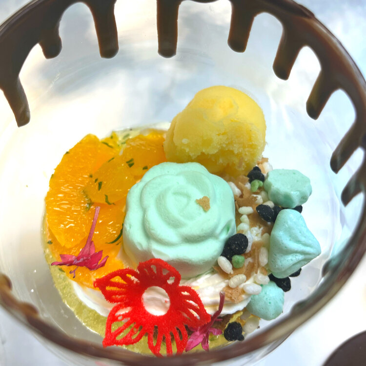 柑橘系のフルーツとミントの爽やかなパフェ