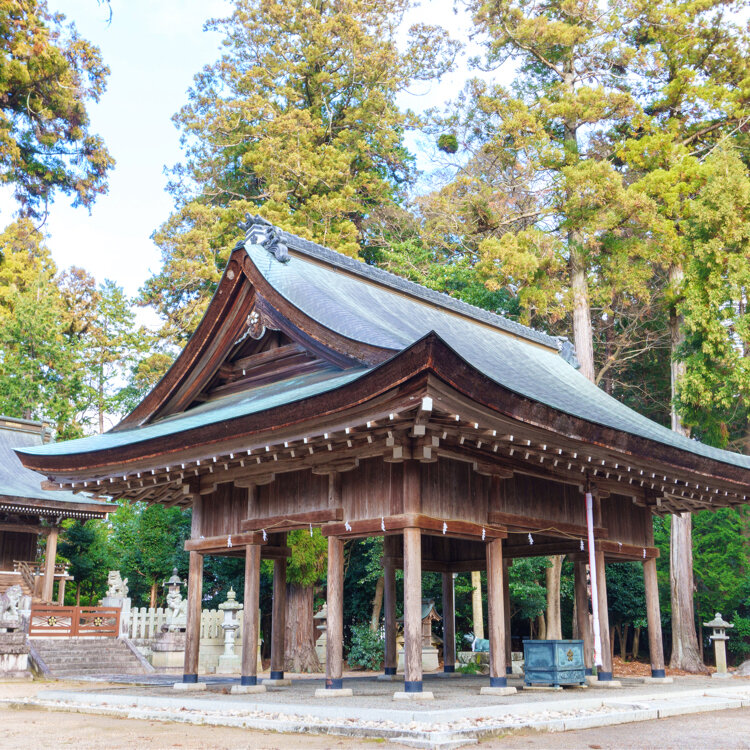 小野妹子に命じて創建した神社で、大きな鳥居と立派な拝殿は