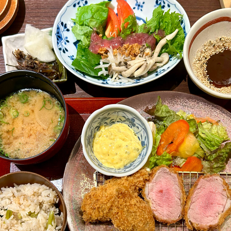 2種類有るご飯もおかわり自由で、主人が頼んだあじ豚ロースかつも一切れ貰いましたが、柔らかくて美味しかったです。