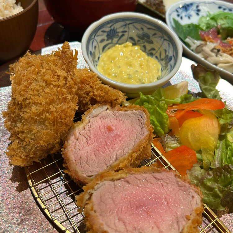 私は、豚肉のシャトープリアン極上のヒレかつと季節の名物広島県産大粒かきフライを頂きました。