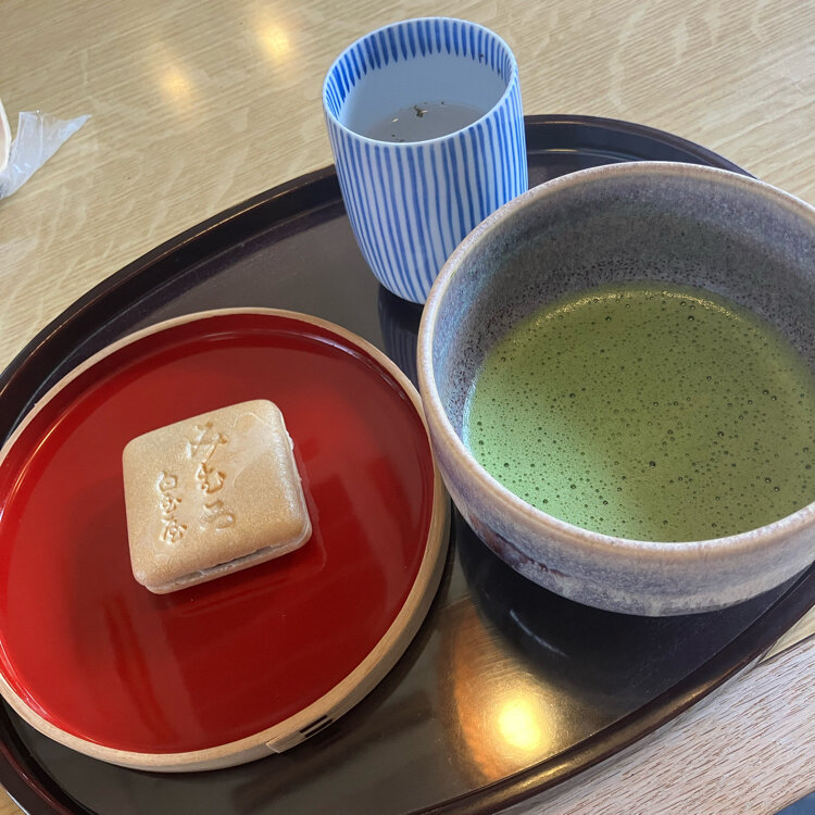 お抹茶とみむろ最中でホッとひと息..