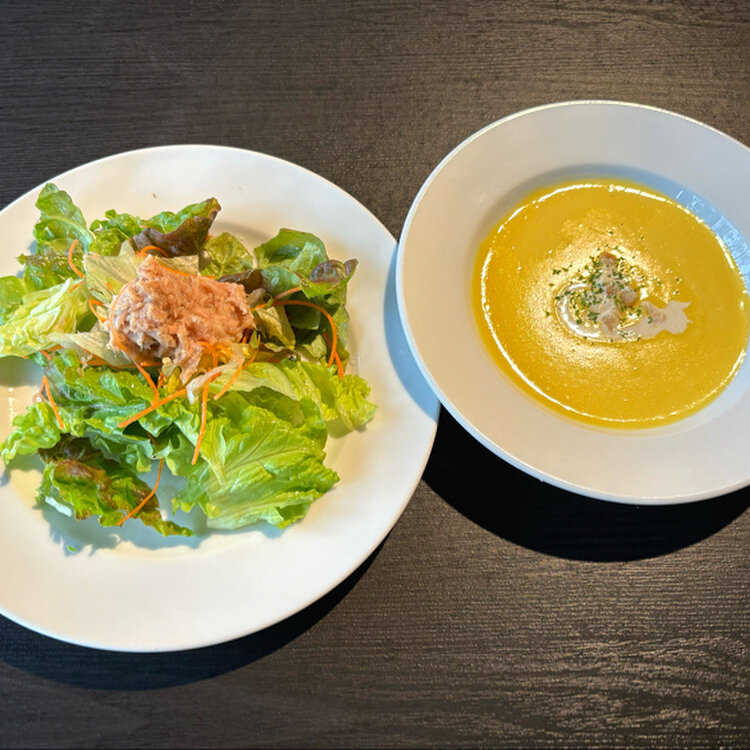 切り株みたいなプレートにはたっぷりの野菜にかわいいピンクのビーツドレッシング、ポテトサラダ、スクランブルエッグ、ベーコン…と盛りだくさん。モーニングメニューにはドリンクバーがついているのでゆっくり過ごしたいときにぴったりです。
