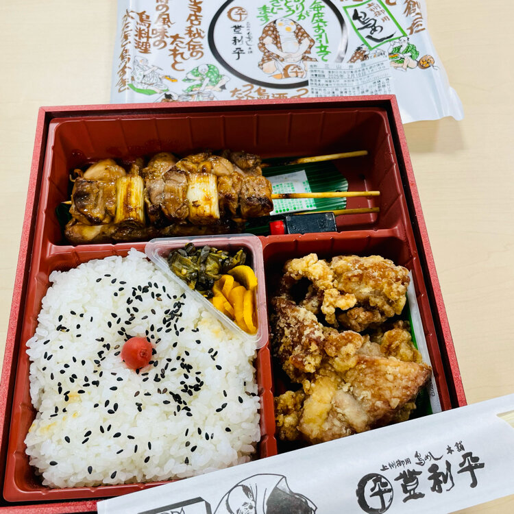 ⭐︎上州御用鳥めし本舗登利平⭐︎ …三山弁当… 埼玉県熊谷市でお仕事、お楽しみのお弁当(^^) 昭和28年群馬県前橋市で創業、今は群馬、埼玉、栃木で30店舗以上展開している老舗の小料理屋さんの鳥めし。 赤城、妙義、榛名と、群馬県を代表する山々をモチーフに、鳥串、から揚げが盛りだくさんの三山弁当を頂きました。 ボリュームたっぷりで美味しかったです。