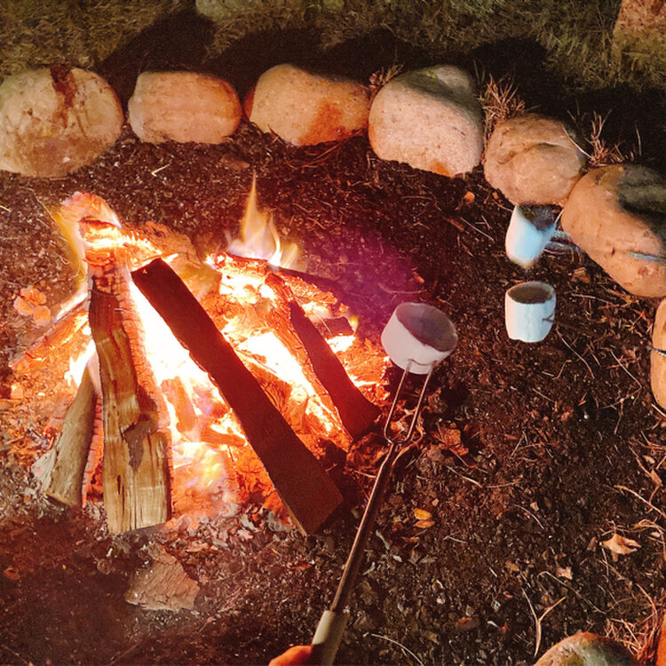 個室でお肉を焼いて、最後はお部屋の近くにある焚き火エリアでマシュマロを焼いてスモアサンドを作ります。