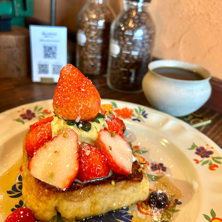 #季節のフレンチトースト#いちごとピスタチオ#コーヒー#コロンビアピンクブルボン クリエーション