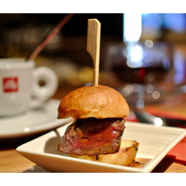 ビーフステーキのトリュフバーガーやサラダ スープも並びボリュームたっぷり🌟