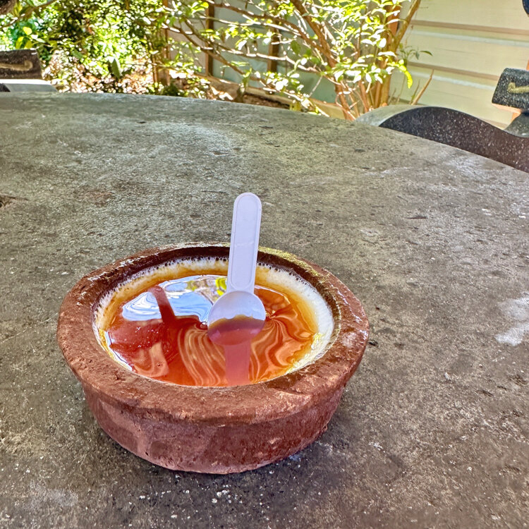 お店の奥に石のテーブルがあってそこで小休憩。お店のおばちゃんが食べてる途中もハニー足りてるか、もっとかけようか3回くらい聞いてくれました笑