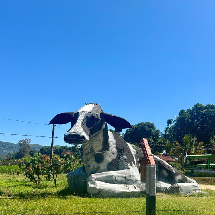 食べ終わって移動再開。すぐに巨大な牛の像?やっぱりこの辺は酪農が盛んなようでした。