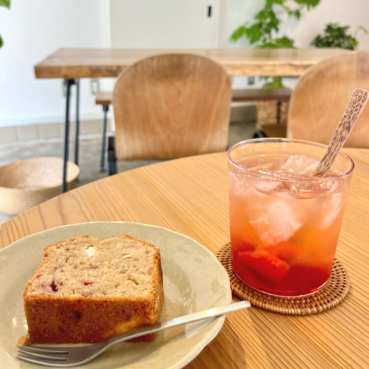 パウンドケーキはいちごとクリームチーズが入っていてしっとり美味しい!