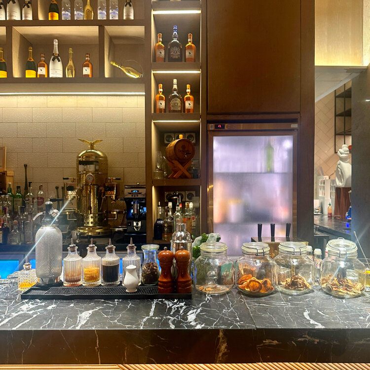 メンバーのリワードでカクテルを無料でいただけたので、寺院のおさんぽの後はホテルのバーでゆっくりしました。私は大好きなモヒートを。ちょっとアレンジの加えられたおしゃれなモヒート、暑い国では特においしく感じられました。