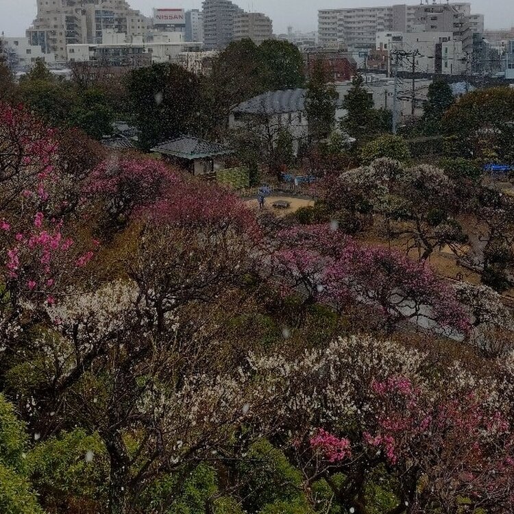 【池上梅園】 はじめましての「池上梅園✾」 出迎えてくれたのは、降り始めた小雪と見頃を迎え始めた梅のお花でした。 池上梅園は池上本願寺の西側に位置し、丘陵斜面を利用した日本庭園で、落ち着いた雰囲気でゆったりとお花を楽しむことができます。 訪れた時の開花状況は、五分咲きでした。 13日からライトアップも始まるようでして、日中とは違った趣を楽しめそうです。 2026.2.7 #開運旅 #ことりっぷと一緒 #大田区 #池上梅園 #花景色 #雪景色 #花活 #梅 #早春