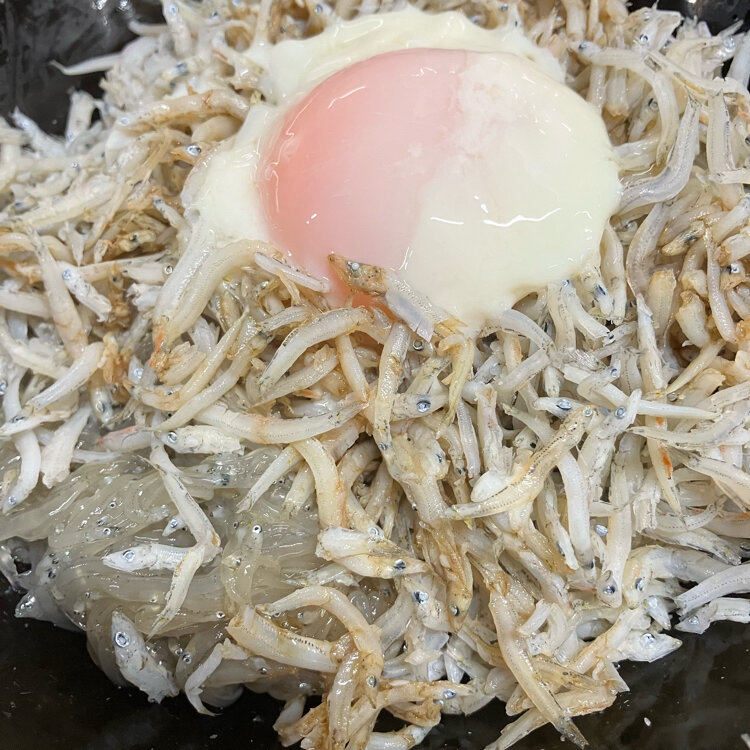 二杯目は一番美味しかった釜揚げしらすとどろめを入れて温玉乗せます☺️
