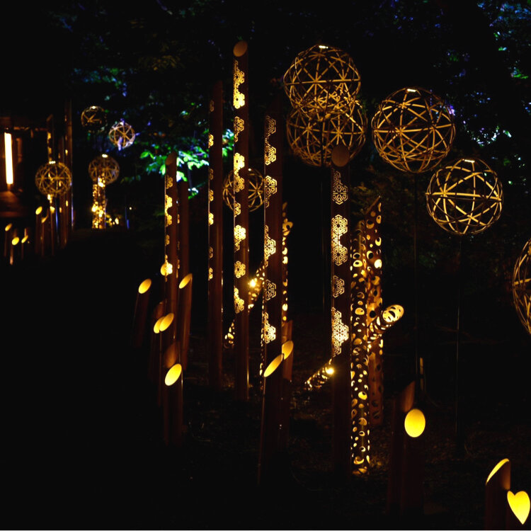 月や日本の四季をモチーフにした竹あかりも多く、楽しく夜のお散歩を楽しむことができました。
