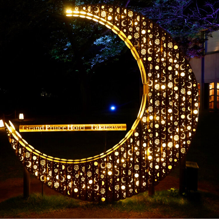 高台にある高輪の地では、江戸時代、月待の文化があったそうです。高輪エリアにあるプリンスホテル(グランドプリンスホテル高輪、グランドプリンスホテル新高輪、ザ・プリンスさくらタワー東京)の共通の大きな日本庭園では、夜になるとそんな美しい文化を現代流にアレンジしたライトアップを楽しめます。都会にありながらも広い敷地と静かで歴史的な空間を持つこちらのホテルならではの素敵なイベントです。