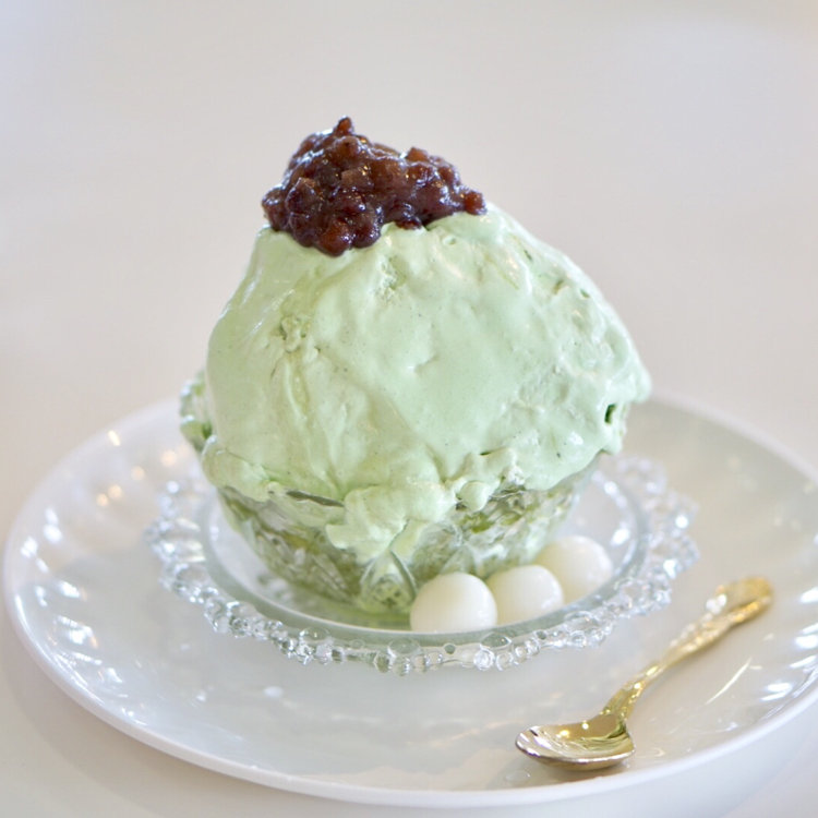 よく花を撮りに行く癒しの場所 フローラルガーデンよさみ の施設内 "軽食スギヤマ" 抹茶とあずきのかき氷 白玉のせ . 表面は抹茶ミルク?淡いグリーン 中はしっかり抹茶色でした(๑^ڡ^๑) #抹茶あずき #ゴーラー隊 #かき氷 #ひんやりスイーツ #わたしの街 #愛知 #刈谷