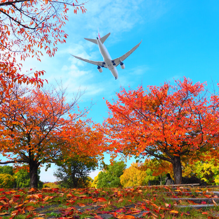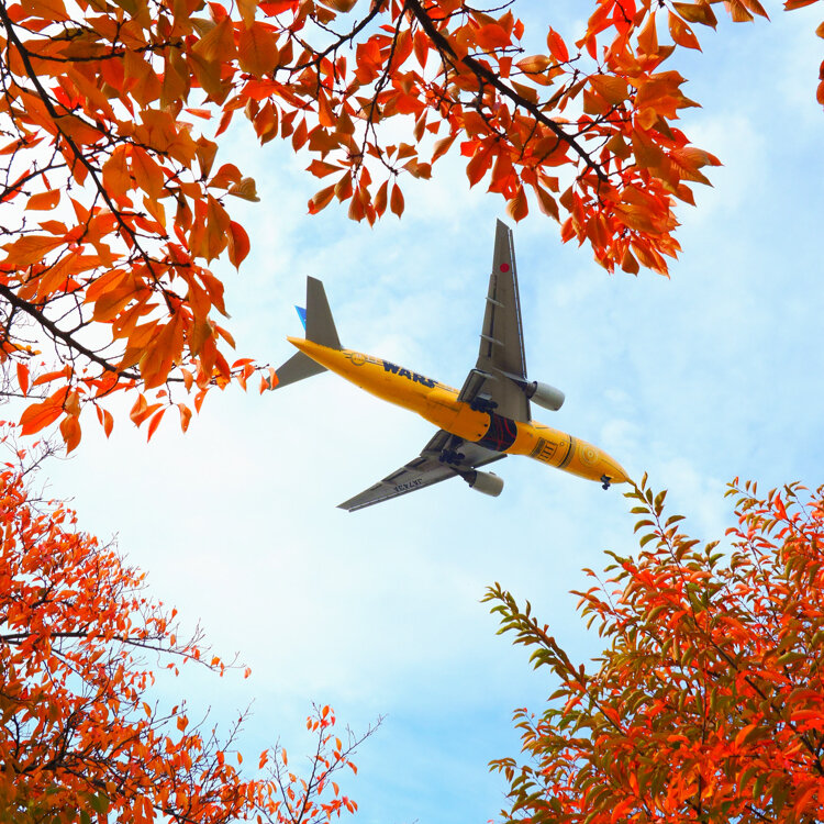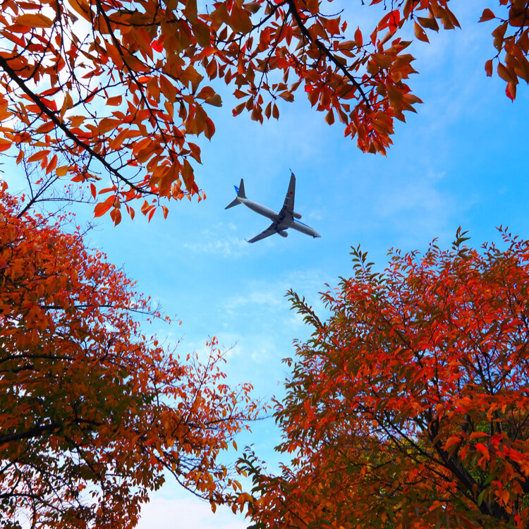 また、嬉しい事に飛行機が頭上を通り抜ける