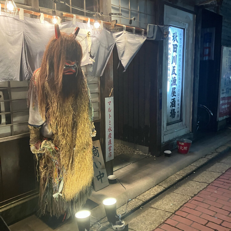 で、来たのがこちら秋田川又漁屋さん✨店頭になまはげさん👹