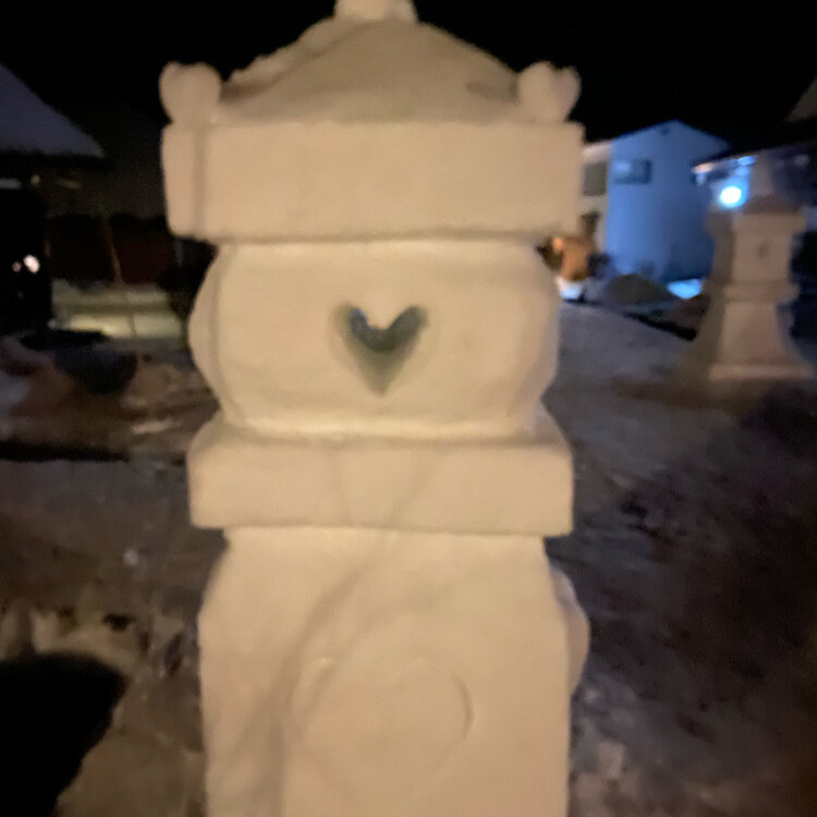 大内宿② 今年も見れた♡の雪灯篭 雪灯篭の窓にアヒル隊長も ひそんでたりとꉂ ☺️