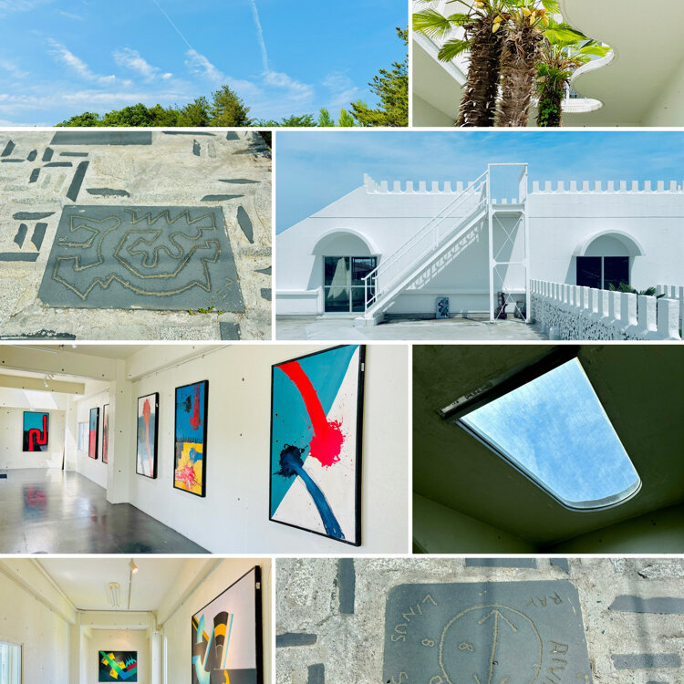 真っ黒な背景に色彩豊かなシールを貼っていくと