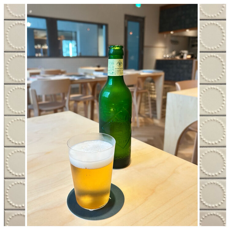 ラストオーダーの時間になり、日も暮れてきたので、ビールをお願いしました。