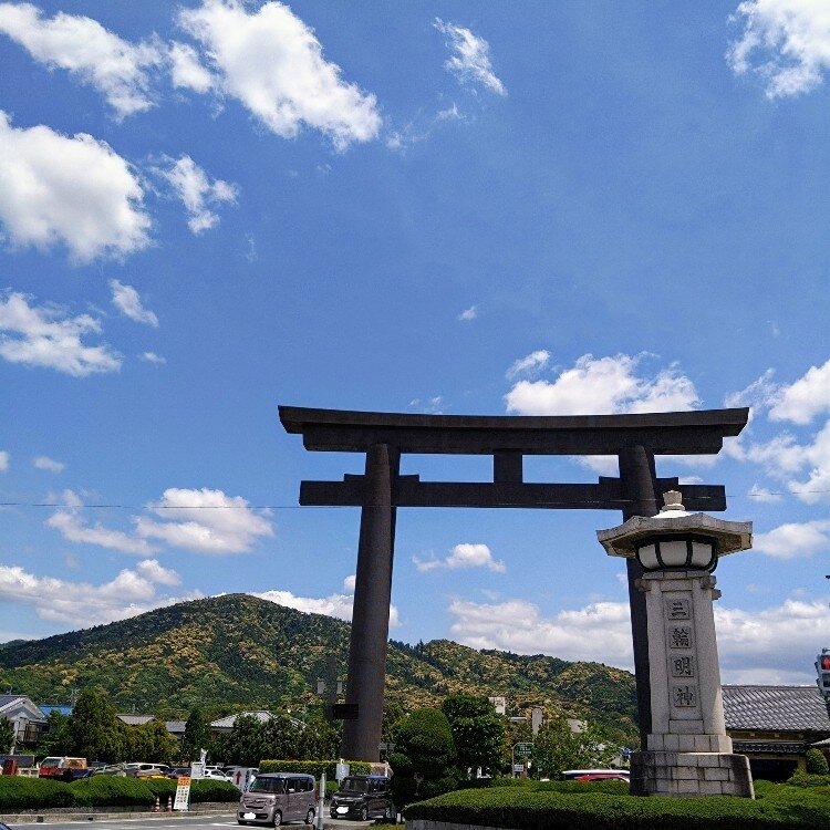 JR三輪駅より徒歩5分ほどで着きますが、大きい鳥居を前にした厳粛な空気は伊勢神宮に通じるパワーがありました。