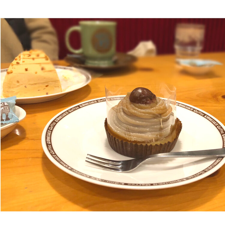 熱々のコーヒーと純栗ぃむ🌰 やっぱり、マロンケーキが1番好き🧁 あったかブランケットまで持って来てくれました。今年も1年ありがとう😊😊 2022.12.27 #Myことりっぷ #コメダ珈琲 #カフェ納め #わたしの街
