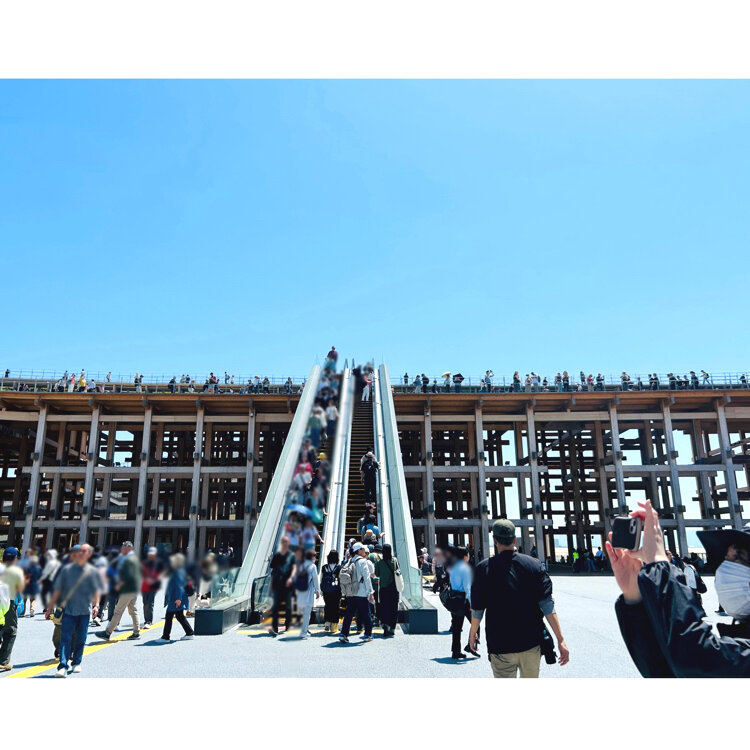 大阪関西万博に行って来ました。右も左もよくわからないままの無計画な7日前パピリオン予約をして行ってきました。当日8時半過ぎに東ゲートに着き、ほぼ1時間弱並び、手荷物検査をし、いざ会場へ。唯一パピリオン予約出来た「PASONA NATUREVERSE」へ東ゲートから西ゲートへと向かいました。手には携帯Google検索‥‥広すぎて迷いに迷いました😅テレビで見た色々なパピリオンを横目に見ながらワクワクしながら真ん中を突っ切って行ってたはずがなぜが海が見え、オレンジの屋根の休憩所まで行ってしまい、大屋根リング越しのシンガポール館が綺麗でまず感動✨そして、東ゲートに着くなら東ゲートにあるパピリオン予約をしてから行けば良かったなと猛反省🐒の朝でした😅