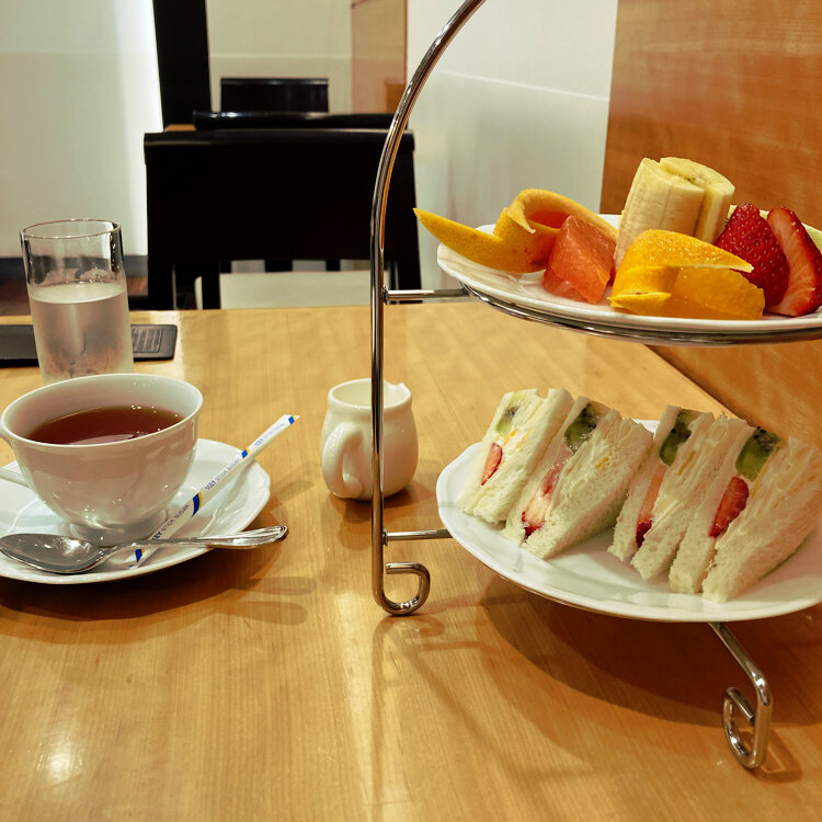 千疋屋のモーニング。 日曜日の11時少し前に到着。 まだ注文できるみたいだったので、モーニングをお願いしました。カレー、ワッフル、フルーツサンドを選べます。 フルーツサンドは甘さ控えめ。 11時過ぎてもお客さんは1組増えただけで、あまり混雑してませんでした。