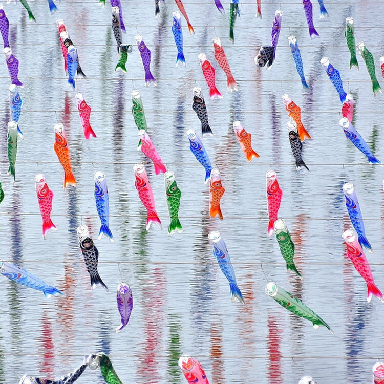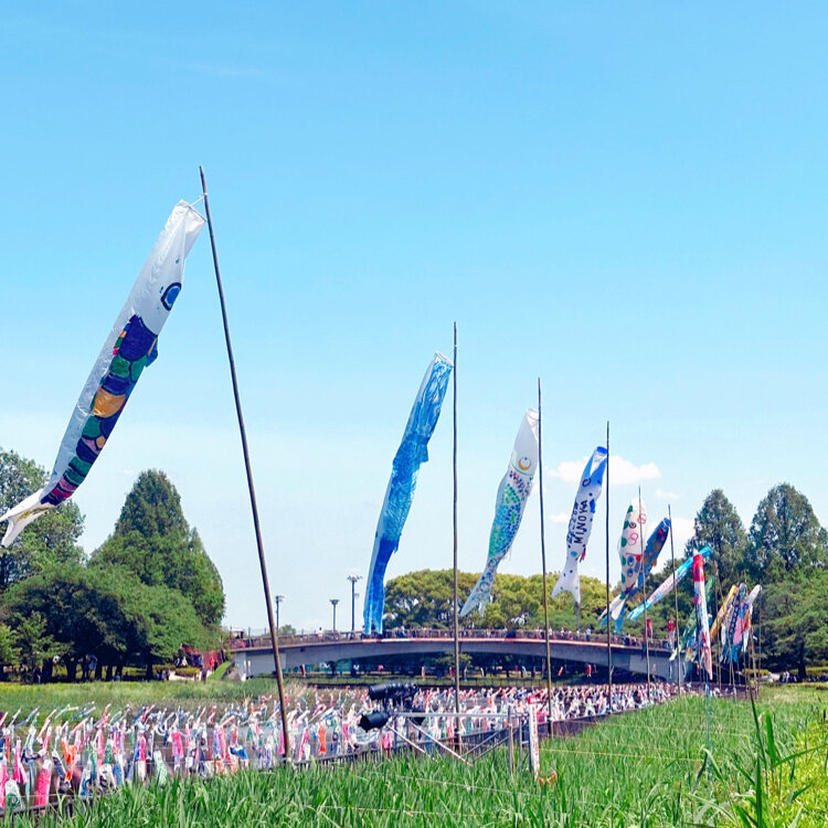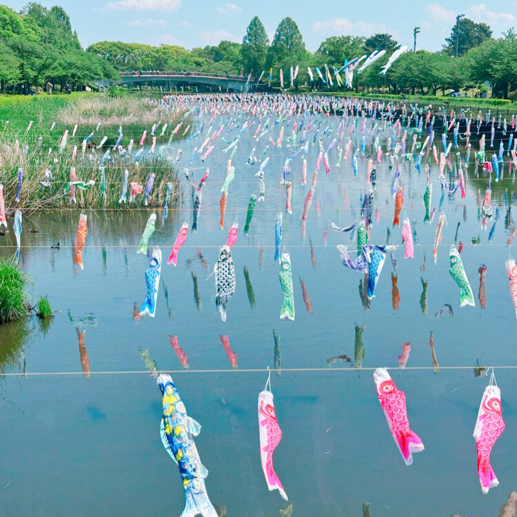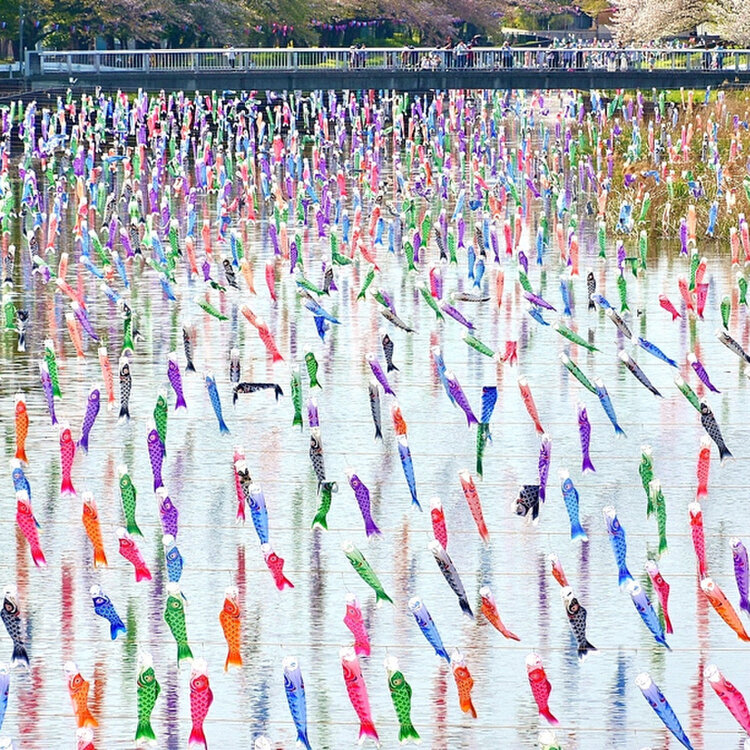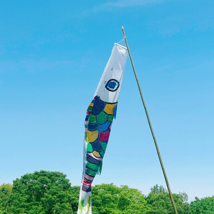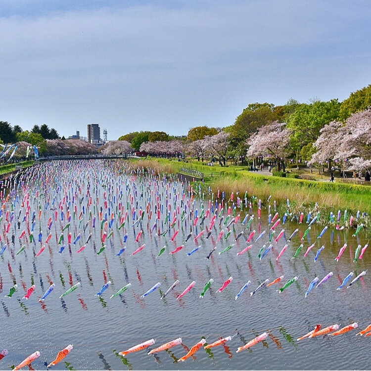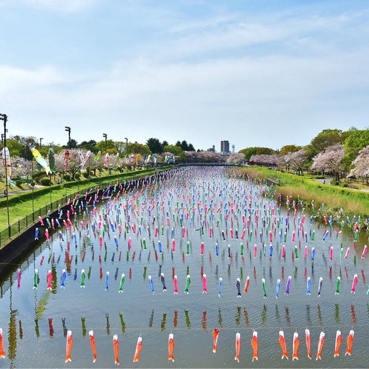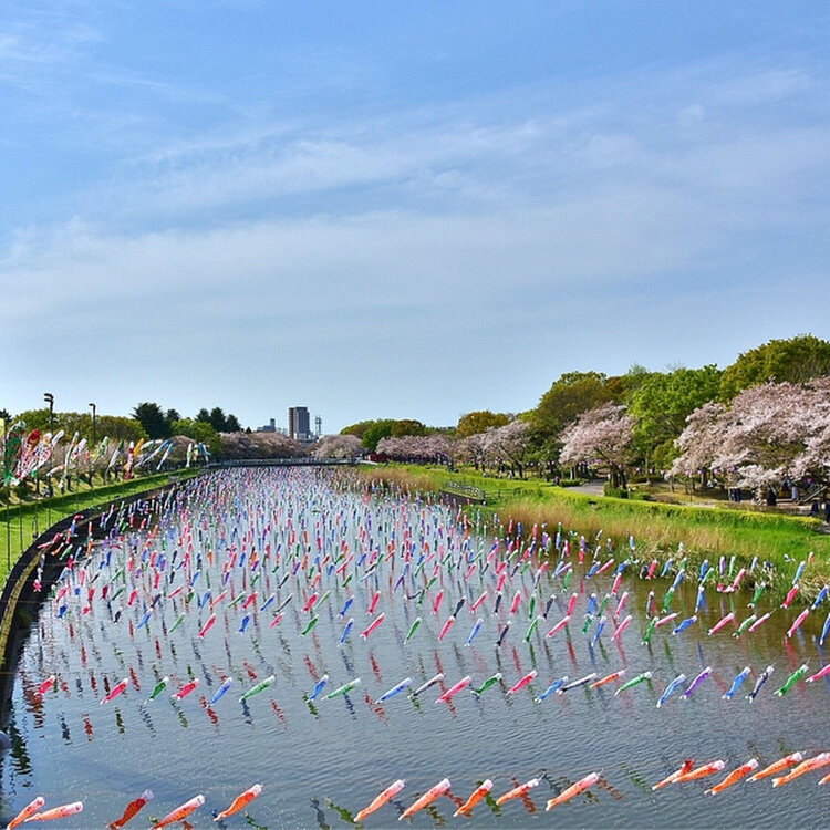 鶴生田川の桜と鯉のぼり