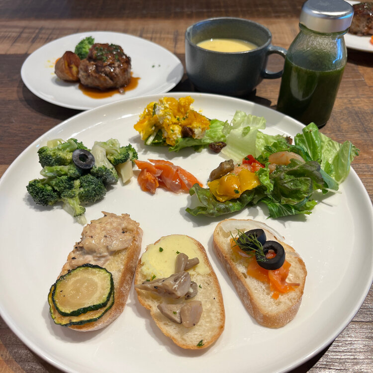 なんと焼き立てハンバーグや揚げたてサーモンフライ、オムライス(オムレツも可)、チキンヨーグルトカレーもある‼︎