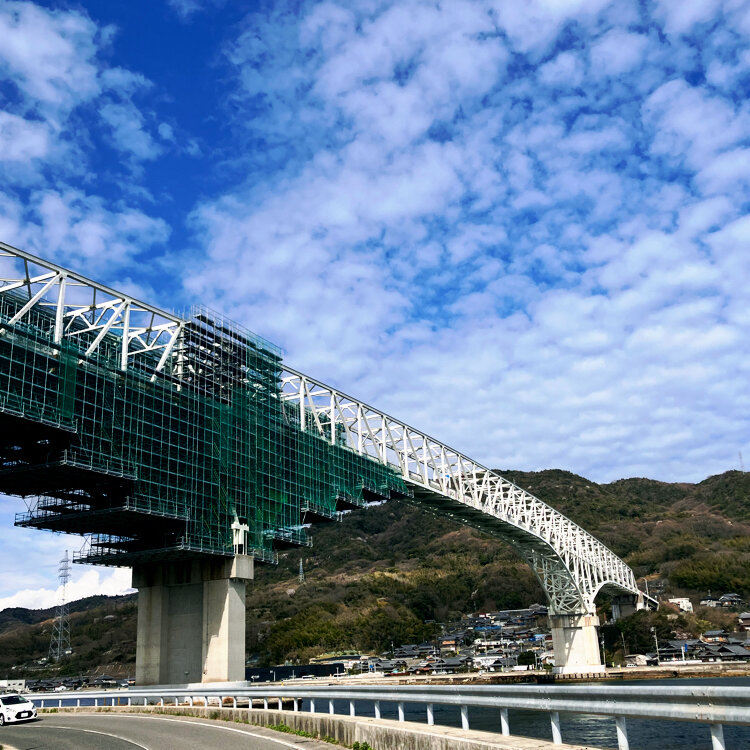 江田島と倉橋島を結ぶ早瀬大橋を見上げる場所で