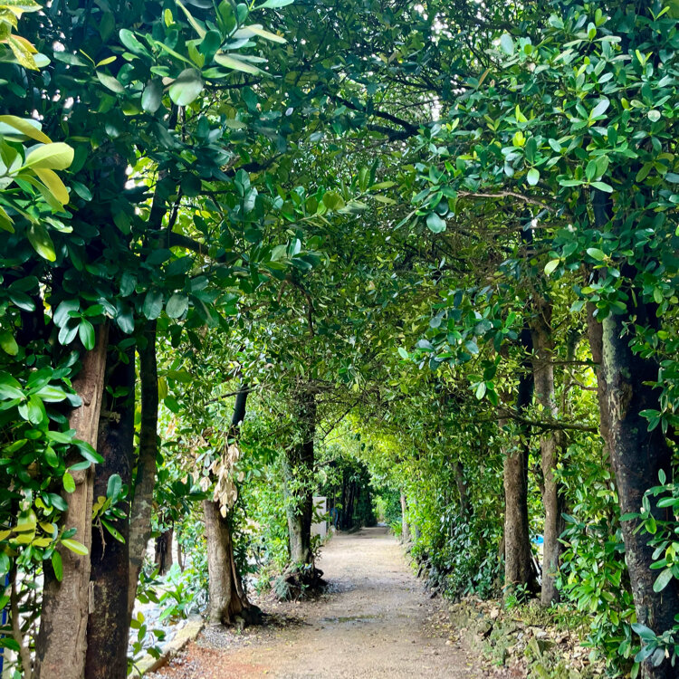 海沿いでふくぎに囲まれたカフェ。