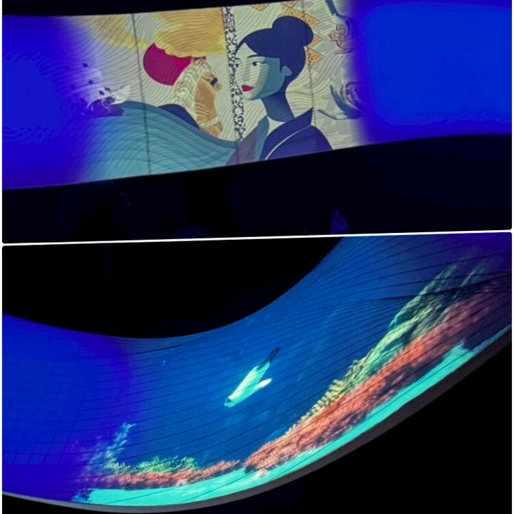 巨大スクリーンに映像が流れ、海に対するメッセージ性の高い画像でした。