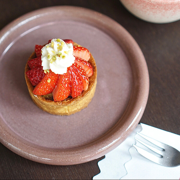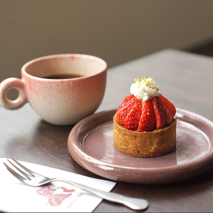 笑顔で迎えられ苺のタルトとコーヒーを。
