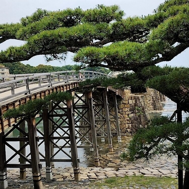 錦帯橋と槍倒し松(やりこかしまつ)🌳🌳