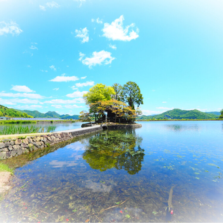 池の中に浮かぶような神社で、姫路の隠れた絶景スポットです。