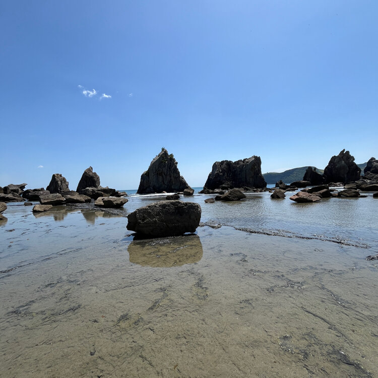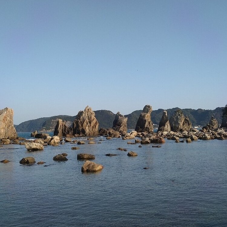 熊野古道観光から白浜に向かう道中に偶然見つけました。 火山の影響で突起した岩場が、波により長い年月をかけ削られた結果、他にはない芸術的な風景が完成したようです。 ただ、伝説的な話では、弘法大師 空海が岩を隆起させたというものもあるようで、弘法の湯や空海というお店など、空海にちなんだ場所にしたがありました。