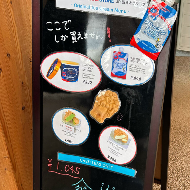 「ミャクミャクもなかアイス」は、コネクティングゾーン内、「ウズベキスタンパビリオン」近くの大屋根リング下のフードワゴンで買いましたが、西ゲート近くのEXPO2025 OFFICIAL STORE(JR西日本グループ)でも販売しているそうです。