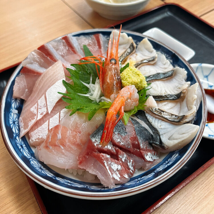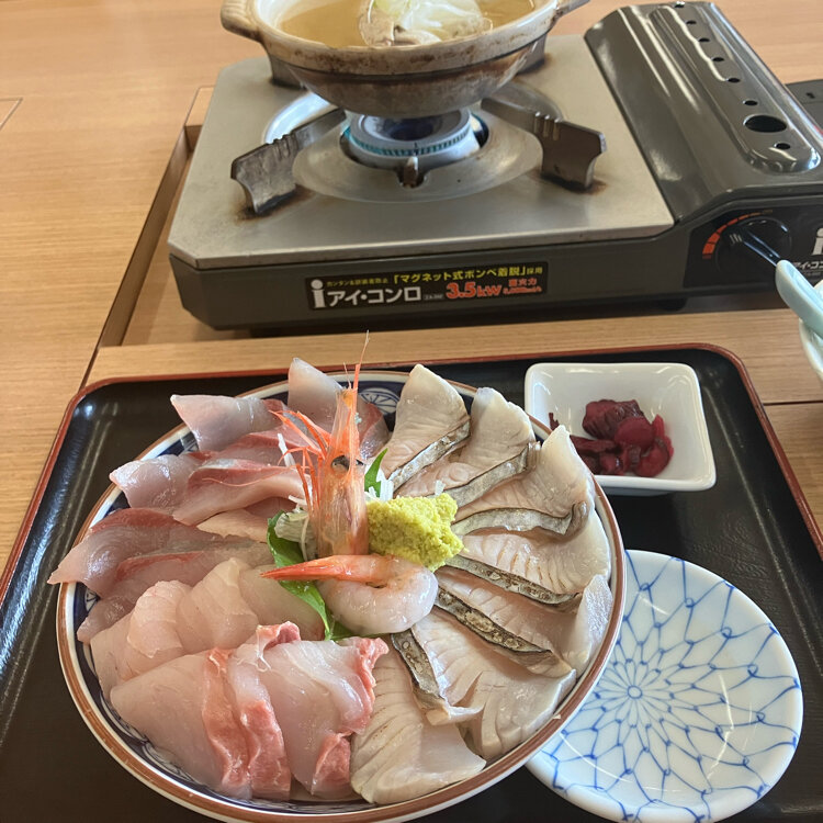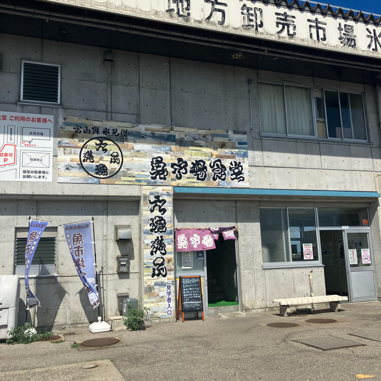氷見港の魚市場内にあるこちらのお店では、氷見湾で水揚げされたばかりの旬のお魚を楽しむことができます🐟