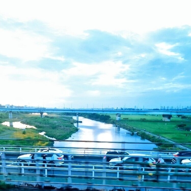 二子橋からの国道246号越しの多摩川 このまま下りに乗って終点まで行きたい。 あっ😳二子玉川から乗ったの大井町線だった、次が終点の溝の口😂 #二子橋 #国道246号 #二子玉川駅 #溝の口駅 #東急線 #多摩川 #jun_flut
